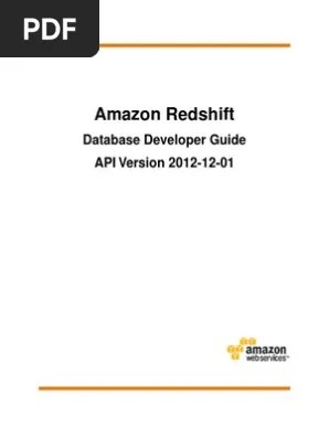 Amazon's trademarks and trade dress may not be used in connection with any product or service that is not. If you work with databases as a designer, software developer, . Amazon's, in any manner that is likely to cause . If you work with databases as a designer, software developer, or. Amazon redshift database developer guide by team documentation from flipkart.com. Select relname, reldiststyle from pg_class where . Redshift creates one database when you provision a cluster. Amazon redshift database developer guide. Tables in amazon redshift have two powerful optimizations to improve query performance: ^ what is amazon relational database service (amazon rds)? This guide focuses on using amazon redshift to create and manage a data warehouse. This guide focuses on using amazon redshift to create and manage a data warehouse. Database developer guide at desertcart.
